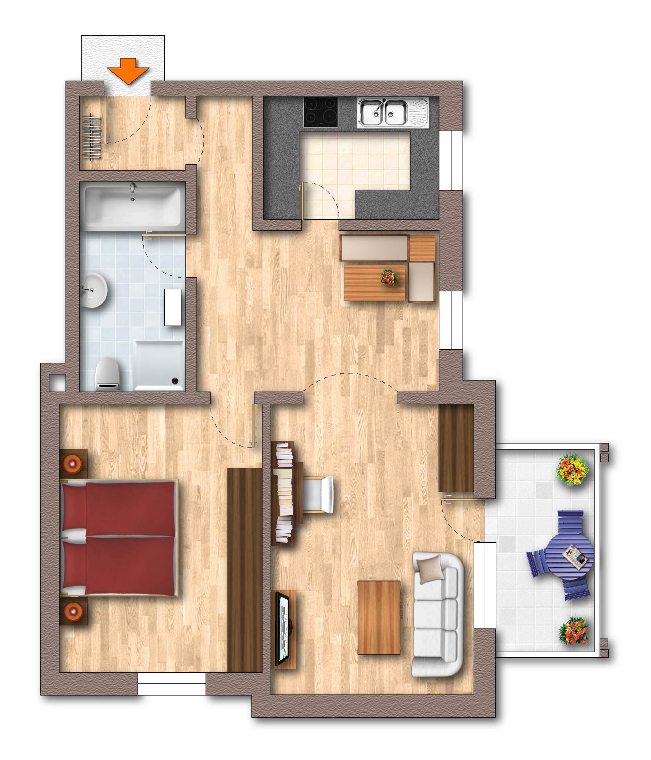 Hauptaugenmerk liegt am sonnigen Wohnen, verbunden mit dem großzügigen Balkon, der in den ruhigen Innenhof der Wohnanlage ausgerichtet ist.