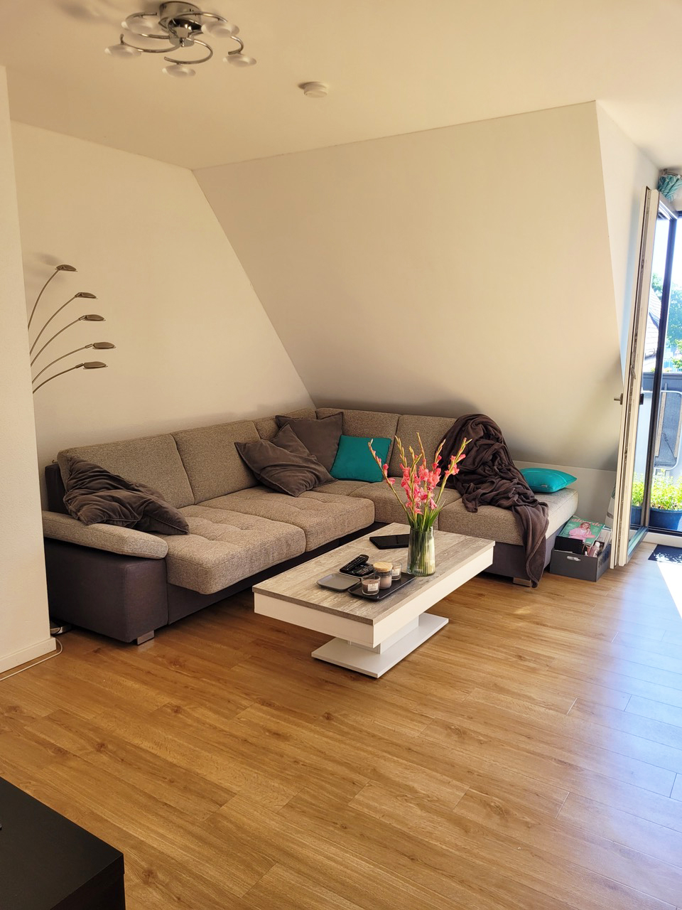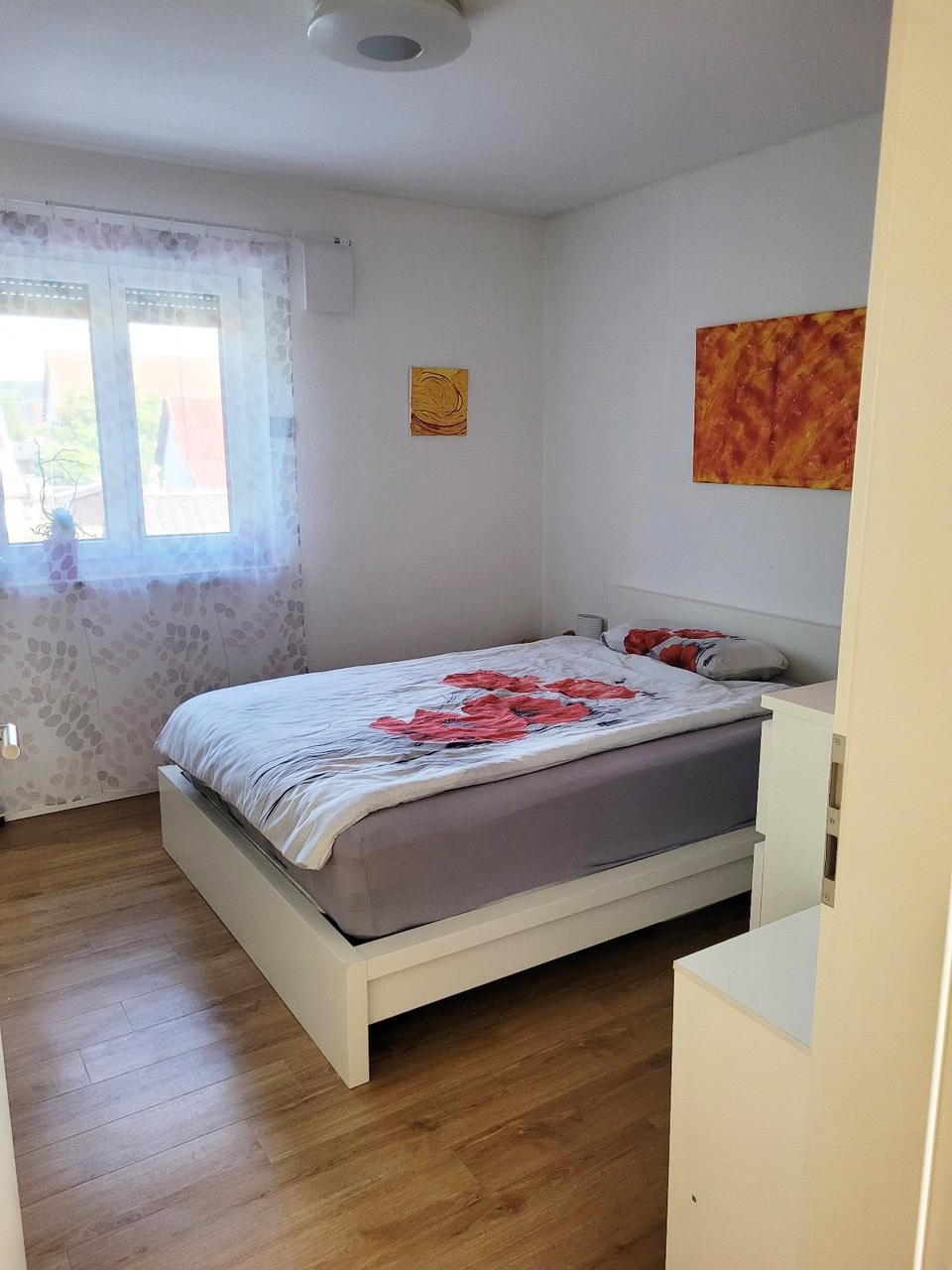 Die Wohnung liegt im 1. Obergeschoss (= Dachgeschoss) und ist nach Westen ausgerichtet.